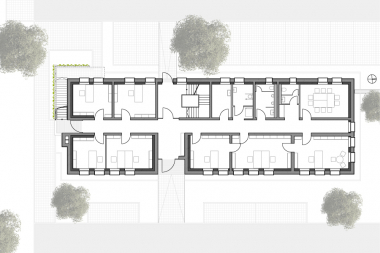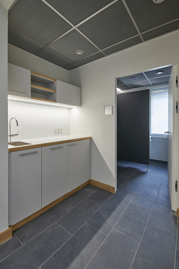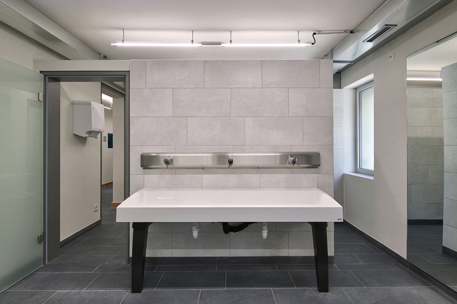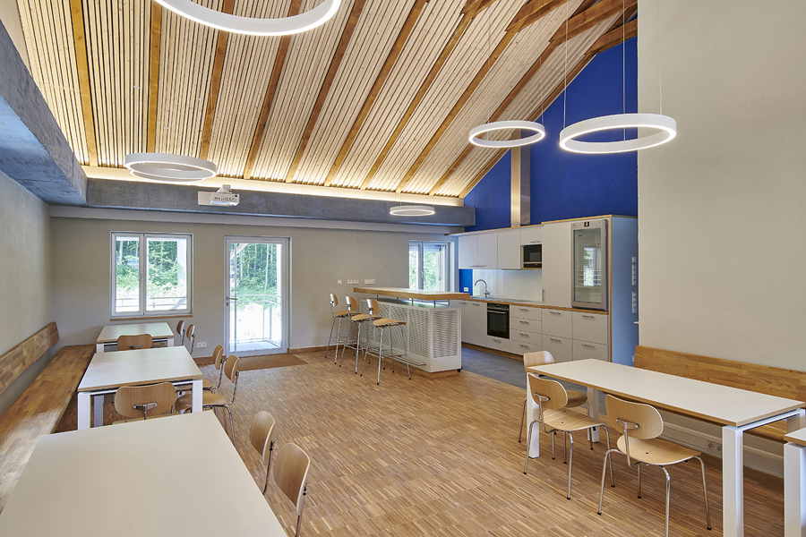 Das Dienstgebäude der Autobahnmeisterei in Erbshausen mit Büroräumen, Umkleiden und Waschräumen sowie Aufenthalts- und Besprechungsbereichen für Verwaltung und Angestellte, wurde im Zuge der energetischen Sanierung komplett entkernt, (general-)saniert und neustrukturiert.