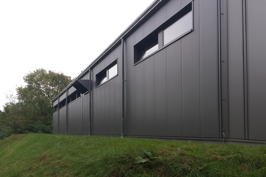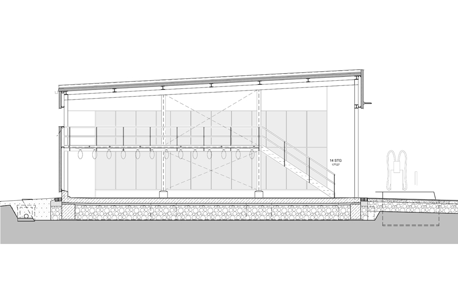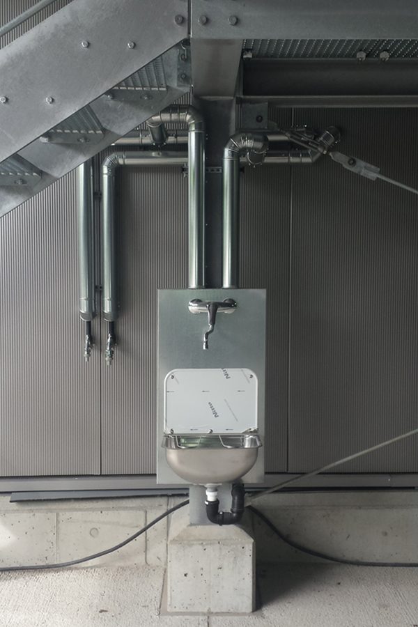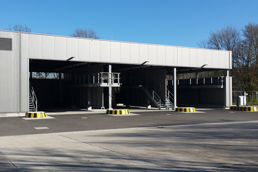 Die offene und die geschlossene Halle bilden zusammen eine Einheit und dienen zur Reinigung von Bundeswehrfahrzeugen mit einem Gesamtgewicht bis ca. 60t. Zwischen den einzelnen Waschplätzen, an den Längsseiten, sind jeweils Arbeitsbühnen als Art Stege in einer Höhe von ca. 2,50m angeordnet, um das Reinigen der Fahrzeuge von oben bzw. des Daches zu ermöglichen. Direkt aneinandergrenzende Waschplätze sind durch Spritzwände getrennt. Die zwischen den Waschplätzen angeordneten Technikräume beinhalten Heizung, Lüftung, Sanitär sowie eine Hochdruckreinigungsanlage, Elektro- und EDV-Installationen. Die Hülle der Stahlkonstruktion bilden im Bereich der Wand- und Dachflächen Sandwichpaneele. Die geschlossene Halle wird durch zwei motorisch betriebene Sectionaltore mit Schlupftür, die vollflächig verglast sind, verschlossen. Fenster mit Wärmeschutzverglasung, auf der Rückseite der geschlossenen Halle, sorgen für mehr Belichtung und Tageslicht.